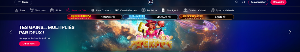 Les Jeux casinos sur le site Oria Casino